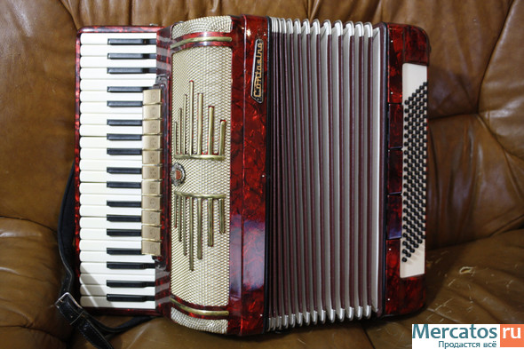 ПРОДАЖА БЕЗ ТОРГА. Практически новый шикарный большой полный немецкий аккордеон Contasina, 1999 г. Инструмент лежит без дела уже пятый год. Красивый бардовый перламутр, 41 клавиша аккомпанемента, 120 басов, 3/11 регистров, состояние - как на витрине (в принципе, видно на фото), меха тугие (не растянешь!), ремни в идеале. Привезён из Германии в 2006 г., б/у 1 мес., в комплекте - аккордеон и чемодан. Самовывоз или доставка с обязательной её предоплатой 500–1000 руб. на мобил. номер. ЦЕНА ОКОНЧАТЕЛЬНАЯ.