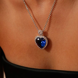 Ожерелье «СЕРДЦЕ ОКЕАНА» из кинофильма «Титаник» в форме сердца с многогранным синим кристаллом. Подвеска и цепочка инкрустированы прозрачными сверкающими кристаллами. «СЕРДЦЕ ОКЕАНА» - стало символом красивой, яркой и искренней любви! Уникальный цвет Необыкновенная цветовая гамма уникального драгоценного камня - танзанита обьеденяет в себе как цвета темного морского неба, так и цвета спокойной океанской водной глади. Такой цвет не может передать ни один другой драгоценный камень! Огранка в форме сердца Для обычных камней используется круглая "бриллиантовая" огранка выполняемая клиньями, но специально для "Сердца Океана" делается редкая и очень красивая огранка в форме сердца. Это делает ожерелье поистине уникальным!