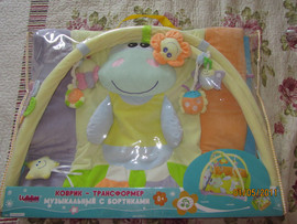 Продам очень хороший развивающий коврик с дугами, подвесными игрушками, с бортиками, голова бегемотика выполнена в роли подушечки, шуршащие ручки и цветочек, зеркальце, очень приятный на ощупь, в отличном состоянии бу всего 2 месяца! Очень понравится Вашему малышу! Имеется упаковка.Покупали в Rich Family за 3000р.