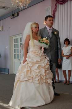 Шикарное свадебное платье,коллекция 2010, купленное в салоне за 26000,00, рост 164-170, размер 44,корсет на шнуровке, на платье съемные цветы, цвет нежно персиковый с перламутровым оттенком, +фата + аксессуары, после химчистки! в чехле! тел. 89221100790,nsagura@yandex.ru