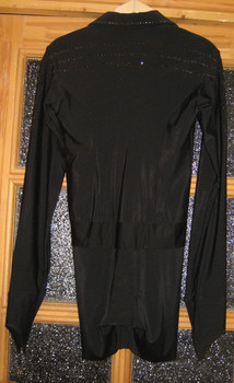 черная рубашка,расшита камнями svarovski:спина,манжеты и верхняя передняя часть(плохо видно на фотках),размер XS-S,длинна 60см,ширина 45см