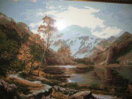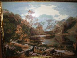 Осень в горах . Ручная работа Вышивка Счетный крест, канва материал 100% шерсть Оформление багет+стекло. размер 59х45 30000р