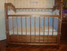 Кроватка детская "Кристина 80" (бук) три положения поднятия ложа. три положения опускания бортика, вместительный ящик для белья, в комплнкте кокосовый матрац, мягкие борта, детская подушка, две наволочки и простынка (все в одном стиле), карман на кроватку. Все в отличном состоянии. Покупателю подарим ванночку для купания новую. ТОРГ.