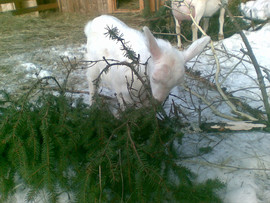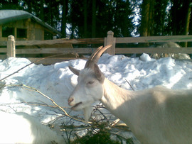 Продаём комолого козлика,1,5мес,помесной(зааненско-русской)породы:75%-зааненская кровь,25%-русская порода.Потомство от этого козлика будет давать вкусное молоко сливочного вкуса,в приличном количестве.Удой матери сейчас(2окот) 4-4,3 л.В последующих окотах удой повысится ещё.Удой бабушек-7 и 6 л.Основным принцыпом выбора козы(матери)при покупке в 2010г был вкус молока и ,конечно, удойность.Отец(живёт в нашем хозяйстве) и дед(по матери)козлика-чистокровные зааненцы(плем.хоз."Надежда" Тверской губернии).На фото- козлик,его мать и отец.ВОЗМОЖЕН торг.