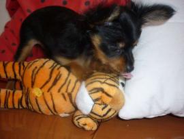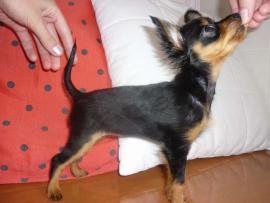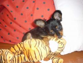 окрас: Чёрно-подпалый. Предполагаемый вес: 1,5кг. Документы РКФ, привита по возврасту. Приучена к туалету. Очень ласковая, весёлая, игривая.