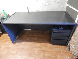Так же к нему продаю маленький стол для офиса в том же стиле. В стол встроена тумбочка из 2-х отделений. Размер стола: 105х44х61.