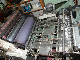 Хамада Е-47 (470х370) : Японка 1 красочная, увлажнение не спиртовое,но есть и валы для спиртового увлажнения. Т.е можно менять. Краски по стандарту: не специальные обычные типографские. Печатает на газете на офсете на самоклейке, представительский картон минимальной плотности. Печатает полноцвет.