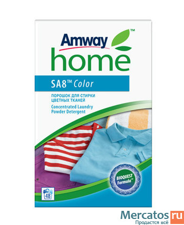 Стиральный порошок SA8 для цветных тканей (Amway Home) 3кг. Для цветных тканей. Отлично отстирывает и выводит пятна, сохраняет цвета у тканей, полностью выполаскивается, не содержит фосфатов, не вызывает аллергических реакций и раздражений на коже. Ваша кожа будет здоровой, а белье чистым и мягким! В состав входит соль кремниевой кислоты, предотвращающая коррозию металла (молнии, заклепки и др). Концентрированный, экономичный, хватает в среднем на 50 стирок в стиральной машине. А также другие средства для стирки SA8: порошок для любых тканей, для детей, пятновыводитель, отбеливатель, кондиционер и др.