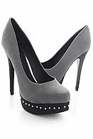 Серая замша, подойдут на полную ногу,новые. Производство США. Каблук 12см, из них платформа 1,5 см.