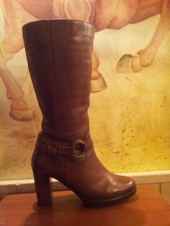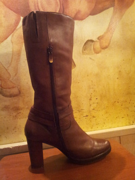 Продаю. Зимние сапоги на меху ТЕРВОЛИНА, размер 37, каблук 9 см, ширина голенища 36 см, натуральная кожа и мех. Цвет коричневый. Состояние хорошее.