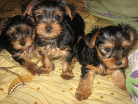 Уважаемые дамы и господа! Хочу познакомить Вас с тремя очаровательными щенками (все три девочки) йоркширского терьера, выросшими в любви, ласке и заботе. Клубные щенки ШОУ класса с отличной родословной. Анатомически правильно сложены. выразительные короткие мордочки типа "бэби фэйс", с великолепной густой и шелковистой шерстью с ярким подпалом (окрас взрослой собачки - светлая сталь с подпалом (золотом)). Хвосты купированы, прикус 6х6 (ножницы), неклеточного содержания, с устойчивой психикой, приучены к чистотею Все три девочки МИНИ (вес взрослой собачки до 2-х кг). Щенки от очень красивых родителей, рожденные 18.01.2011г. Все щенки привиты по возрасту, имеют ветеринарный паспорт международного образца.