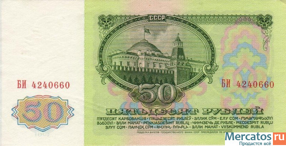 Продажа монет и банкнот СССР. Пятьдесят рублей 1991 года г. Волгоград