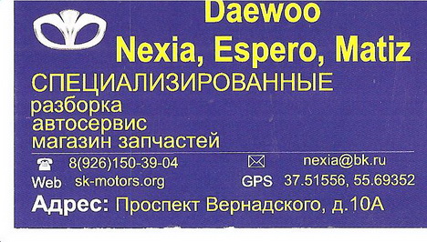 Разборка, магазин, автосервис автомобилей Дэу и Шевролет г. Москва
