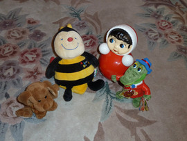- 3 озвученных мягких игрушки (пчела K*s Kids - смеется и напевает, крокодил Гена (новый) - говорит фразы и поет, щенок - лает);