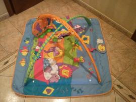 Мягкий мязыкальный игровой коврик создаст малышу чудесные отвлекающие картинки. В комплекте: погремушка пластмассовая, прорезыватели для зубов - 3 разноцветные бабочки, мягкий утенок с ветряным колокольчиком (18х6), мягая погремушка Жираф (23х7), мягая погремушка Львенок (14х9). Возраст: с рождения до 10 месяцев. Размер коврика: 102х110х45 см