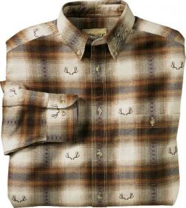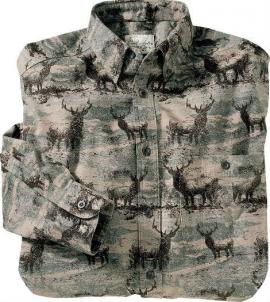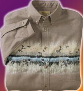 Printed Chamois Shirts Рубашка с природными принтами. Мягкая и теплая хлопковая рубашка с плотностью 6 унций/кв.ярд уместна и дома, и на отдыхе, и на работе. Специальное переплетение нитей дает на ощупь ощущение замши. Фотографического качества, стойкий к стирке принт. Воротник на пуговицах и еще одна пуговица сзади, что предотвращает перекручивание воротника. Нагрудный карман с отделением для ручки. Производство Панама, Гондурас, Никарагуа. р.46-70(!)