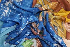 Шелковый платок "Прогулка", по мотивам картины испанского художника-иллюстратора.
