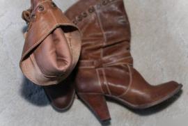 размер - 38, каблук - 7,5 см; одевались 2 раза, набойки немного стерты, а все остальное - "как при покупке". Сапоги продаются в фирменной коробке, с 2-мя новыми набойками.