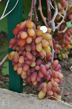 Все саженцы выращены из черенков собственного виноградника, а не привезены перекупщиками с юга. Виноград неукрывной, повышенной морозостойкости. На зимний период лозы пришпиливаются к земле.