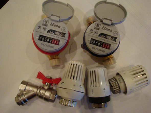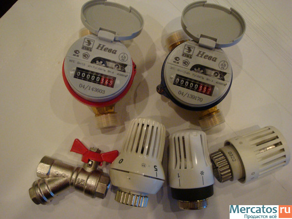 Шаровый кран на 1/2 с фильтром Valtek, Счетчики горячей и холодной воды Нева, Термо головки ТМ и Emmeti. Цена по договоренности.