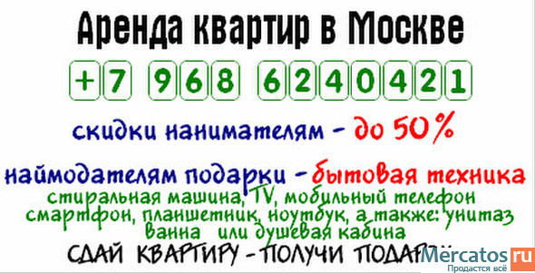 Для хозяев квартир, которые воспользуются нашими услугами - подарки: ноутбуки, планшетники, телефоны, телевизоры, стиральные машины, ванны, унитазы и душевые кабины. Обратитесь к нам и опытные брокеры помогут снять или сдать 1-комнатную, 2-комнатную, 3-комнатную квартиру на самых выгодных для Вас условиях, можно также получить консультации по вопросам стоимости аренды квартиры, как правильно составить договор найма жилья и объяснят, почему может быть опасна аренда квартир без посредников. С нашей помощью можно сдать, снять однокомнатную, двухкомнатную или трехкомнатную квартиру рядом с метро - за один день. Действует гибкая система скидок по комиссионным выплатам для нанимателей - до 50%.