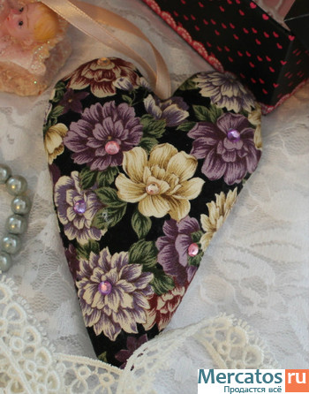 Текстильные сердечки в стиле Тильда.Размер около 18 см.Материалы: английский хлопок,лента атласная США,бусины под жемчуг,стразы клеевые,синтепух. Ручная работа.Отлично дополнит букет цветов,сувенир,подарок,"открытка" на праздник,день рождение.