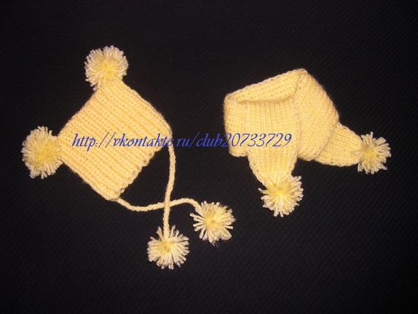 Тёплые,мягкие шапочка и шарфик. Размеры шапочки:обхват головы 22см, высота 10см; длина шарфика 63см.