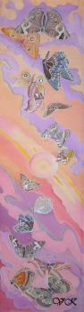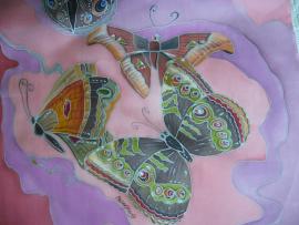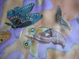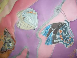 Шарф "Полёт мотылька" выполнен в технике ручной росписи ткани - батик.