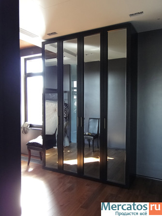 Шкаф 2000х2940 мм. из черного дуба, зеркальные створки с начинкой. Новый, не использовался