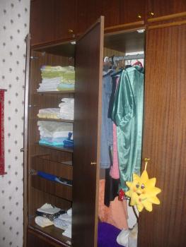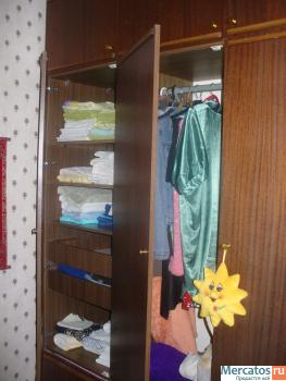Шкаф трехстворчатый с антресолью, под красное дерево. Размер; высота 2.44, длинна 1.70, ширина 0.58. Б/у. Самовывоз.