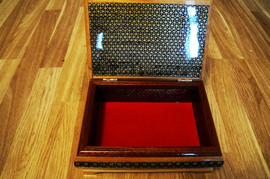 шкатулки покрыты 5 -ти кратным слоем природного лака и имеют зеркальную глянцевую поверхность. Производство шкатулок в иране полностью ручное им занимаются многие столетия и пользуется большим спросом во всем мире благодаря использованию иникальной мозаике хатам . Каждая шкатулка это предмет искусства и выполнена в единственном экземпляре Ждем Вас в нашем интернет магазине !