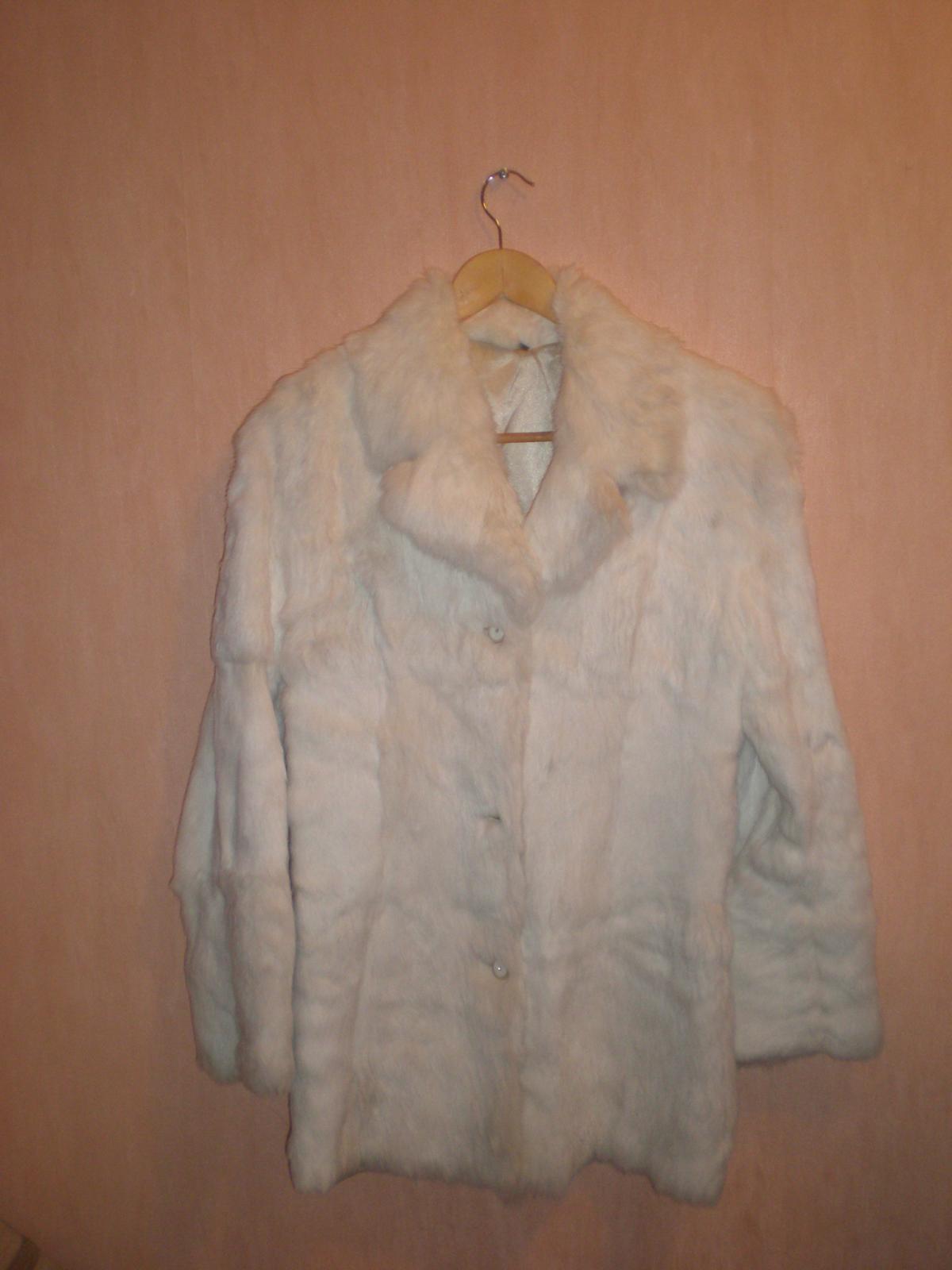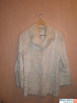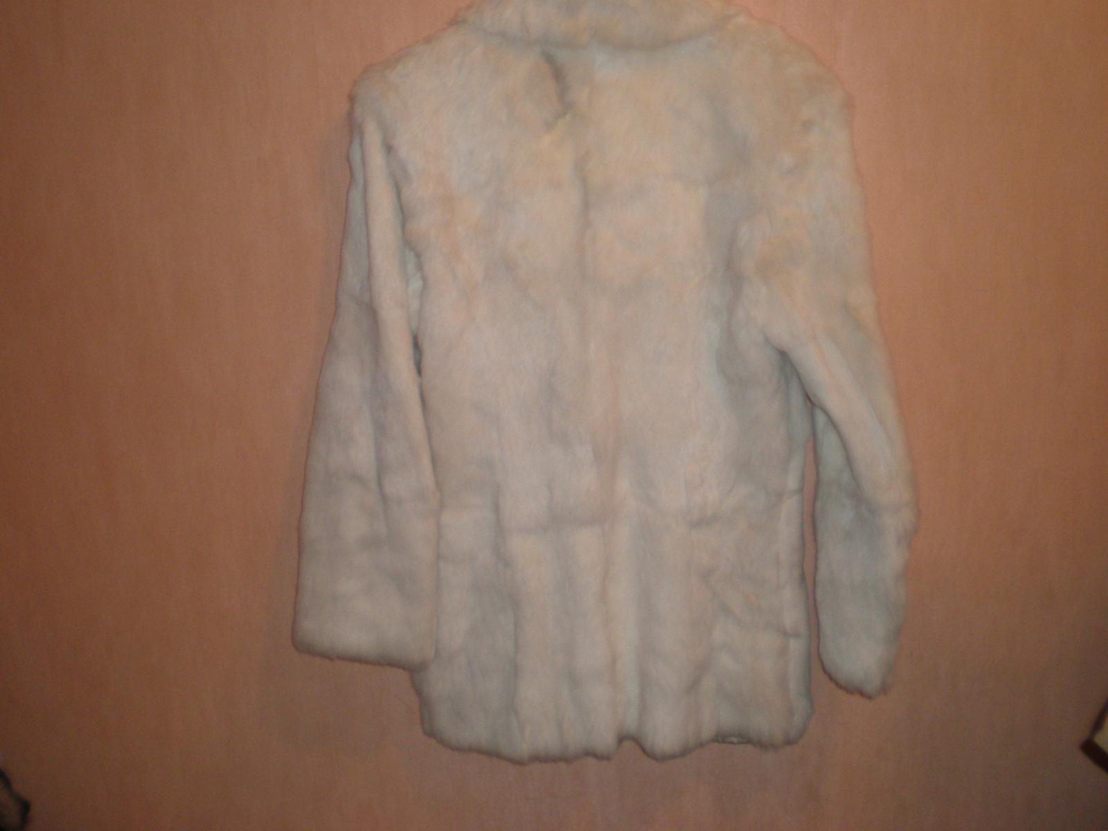 Продам стильную белую шубу из кроличьего меха.Недостаток-небольшая дырка сзади у воротника.
