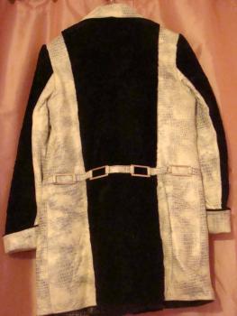 Преобладает черная овчина с белыми встатвками!Объемные карманы!