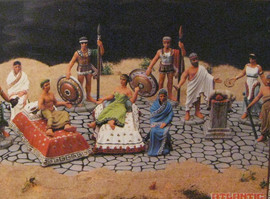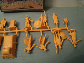 Греческие мужчины и женщины носили свободную одежду, которая драпировалась на теле. Основной предмет одежды был хитон, который носили во многих стилях. Сандалии носили на открытом воздухе, но внутренних помещениях люди находились босыми. Все фигурки здесь кажутся подлинно одетыми, достаточно подлинно.Без сомнения это - самый необычный набор, который очень сильно отличается от стандартных военных наборов.