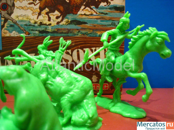 Набор индейцев в масштабе 1/32 (54 мм-60 мм.), производства Atlantic (Италия) Buffalo Hunt. Полный набор в коробке. в наборе: 5 индейцев (одна фигура сдвоенная), 5 фигур бизонов, 1 лошадь. Набор выпущен 1975 г. Отличное состояние фигур и хорошее состояние коробки. Зеленый цвет пластика. оригинал!!! раритет!!! Набор выпущен в 1975 г. Фирма Atlantic прекратила свое существование в конце 70-х годов прошлого столетия. Формы для изготовления набора утрачены. Фигуры очень редкие. Отличное, коллекционное состояние фигур и коробки. оригинал!!! раритет!!! .. Посмотрите другие мои лоты, и Вы найдете много интересного для своей коллекции или для ценного подарка. Представлены масштабы 1/32, 1/35, 1/72, 1/87 на Античность, Средневековье, Тридцатилетняя война, Семилетняя война, Вестерн, Вторая мировая война, Ренессанс, Современные армии.