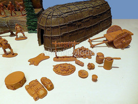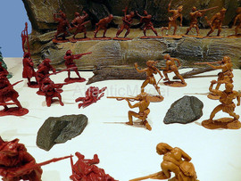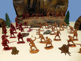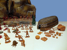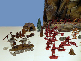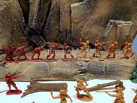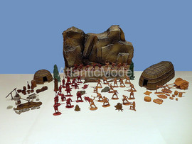 Солдатики 1/32 Barzso. Сделано в США Последний из Могикан. Набор создан по мотивам исторического романа американского писателя Джеймса Фенимора Купера Последний из Могикан, или Повествование о 1757 годе. Франко-индейские войны. Набор в ОРИГИНАЛЬНОЙ КОРОБКЕ. В набор входит: Индейцы Гуроны и Ирокезы, разведчики индейцев Магавков, Британские солдаты, принадлежности для лагеря Британских солдат и стоянки индейцев, аксессуары для леса, фрагмент скалы с горной тропой где гурон Магуа (Хитрая лисица) убивает Ункаса (Быстрый олень) сына Чингачгука и Кору, старшую дочь полковника Монро, Длинный дом и малый вигвам лесных индейцев Северной Америки, уникальные фигуры гурона, ирокеза, и трех магавков, канадского разведчика, британских солдат и шотландского гренадера, которые входили только в playset. Всего 39 фигур в 24 позах плюс аксессуары. До полного набора не хватает 7 фигур. Производитель допускает несколько оттенков материала в одном наборе. Длинный дом, вигвам, скала, аксессуары, фигурки изготовлены из модельной смолы. Отличное, коллекционное состояние. Отличное качество. Совершенно новые. Редкие, интересные, солдатики. НЕ ВЫПУСКАЕТСЯ. РАРИТЕТ.