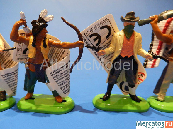 Солдатики в масштабе 1/32 производства фирмы W. Britains. Пешие индейцы и ковбои, в окраске серии 1971 года. Шесть пеших фигур в шести позах. В наборе три пеших индейца и три пеших ковбоя. Материал - окрашенный пластик. Подставка из металла, с надписью Britains LTD 1971. Оригинальная, серийная окраска фигур. Отличное, коллекционное, идеальное состояние. Отличное качество. Без коробки. Коробка не предусмотрена. Представлен ассортимент разных наборов. Редкие, интересные, солдатики из пластмассы. Посмотрите другие мои наборы, и Вы найдете много интересного для своей коллекции или для ценного подарка. Представлены масштабы 1/32, 1/35, 1/72, 1/87 на Античность, Средневековье, Тридцатилетняя война, Семилетняя война, Вестерн, Вторая мировая война, Ренессанс, Современные армии, Гражданская война в России, Сражение за миссию Аламо, Гражданская война в Америке.