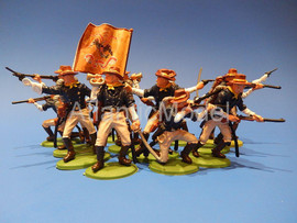 Солдатики 1/32 DSG Усталые Ходоки полковника Вуда. Спешенные . ИСПАНО - АМЕРИКАНСКАЯ ВОЙНА. КУБА. Полный набор, с повторами. Набор из двенадцати фигур в семи позах. Один офицер с флагом и второй с саблей. Материал - пластик. Оригинальная, серийная, ручная окраска. Отличное, коллекционное состояние. Отличное качество. Без коробки. Представлен ассортимент разных наборов. ОРИГИНАЛ. Редкие, интересные, солдатики из пластмассы.
