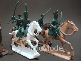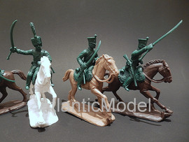 солдатики 1 32 ExForce Французские конные линейные егеря с офицером set #4А. Наполеоновские войны. В наборе 5 пять фигур в 5 пяти различных позах + 5 пять лошадей в 3 позах. Каждая фигура упакована отдельно. Многие детали у фигур, съемные. Может потребоваться немного клея для лучшей их фиксации. В наборе присутствуют дополнительные руки, что позволяет создать другие позы кавалеристов и иметь другой, второй набор. Отличное, коллекционное состояние. Отличное качество. Совершенно новые. Очень интересные солдатики. Без коробки.