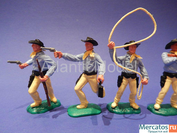 Солдатики в масштабе 1/32 производства Timpo (Великобритания). Ковбои пешие. Четвертый набор. Вторая серия. Голубые рубашки, светло-желтые брюки. Высота фигур 54 мм. Вестерн. Набор состоит из шести пеших фигур ковбоев. Swoppets "Своппеты" - разборные солдатики. Возможно менять местами части тела и оружие. Оружие съемное. БЕЗ КОРОБКИ. Отличное состояние, смотрите на фото. НЕ ВЫПУСКАЮТСЯ. РАРИТЕТ. ОРИГИНАЛ. РЕДКИЕ СОЛДАТИКИ. Посмотрите другие наборы, и Вы найдете много интересного для своей коллекции или для ценного подарка. Представлены масштабы 1/32, 1/35, 1/72, 1/87 на Античность, Средневековье, Тридцатилетняя война, Семилетняя война, Вестерн, Вторая мировая война, Ренессанс, Современные армии, Гражданская война в России, Сражение за миссию Аламо, Гражданская война в Америке.