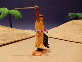 Солдатики 1/32 Timpo Пеший араб Тридцатый воин (5)(11). Производство Англия. Высота фигур 54 мм. Колониальные войны. Одна пешая фигура в одной позе. Желтый цвет рубашки, черные шаровары, красный пояс, с саблей. Солдатики изготовлены по технологии спаивания цветного пластика. Нет окрашенных деталей. Каждая деталь изготовлена из определенного цвета пластика.