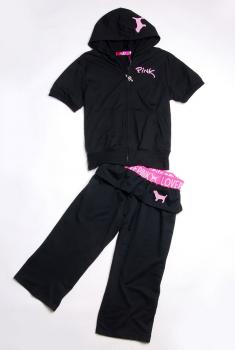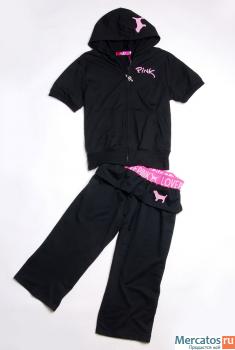 спортивный костюм маленького размера на замке с надписями PINK. Модная резинка на поясе, декорированная надписями PINK. Размер:42-44. Произведено в Корее. Состав х/б,Очень приятна для тела, предназначен для спорта и отдыха.