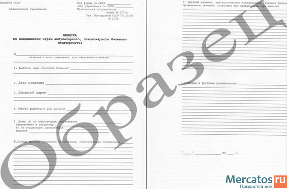 027у (выписка из мед. карты амбулаторного больного) - 1400р,