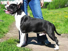 стаффортширский терьер мальчик : 4 мес.; окрас : бело-черный ; здоровенький ; привит по возрасту ; ласковый и игривый ; в надежные руки ;для души и семьи ; не дорого .8-950-020-77-14