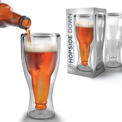 Hopside Down - это пивной стакан от компании Fred & Friends, который выглядит как перевернутая бутылка. Каждый стакан выдут вручную и упакован в уникальную подарочную коробку. Размеры: 18 х 8,5см.