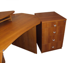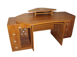 Компьютерный стол, две тумбы и подставка под монитор (производство фабрики "Камбио", Москва). Размеры: стол - 1450х900х760 (ШхГхВ), тумбы - 490х565х760. Цвет - орех, материал - ламинированная ДСП, толщина столешницы - 25 мм, остальных элементов - 18 мм. Все края обработаны кромкой ABS (ПВХ) 1,5-2 мм. Стол имеет выкатную полку для клавиатуры. 1-я тумба: ящик для бумаг, три ящика под диски, ниша для системного блока. 2-я тумба: четыре ящика для бумаг. Возможна установка стола и тумб в линию или углом. Состояние - очень хорошее, торг уместен. Помогу с доставкой.