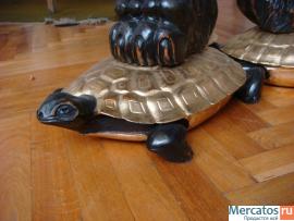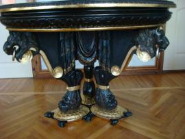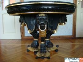 стол диаметром 113см. красоты необыкновенной. столешница инкрустированная-венок из роз. три устоя морды львов и лапы стоят на трех позолоченных черепахах