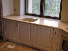 Без кухонной столешницы не обходится ни один современный бар, ресторан, кафе и, тем более, интерьер жилой квартиры. Это изделие каждый день подвергается различным воздействиям, в числе которых сильные технические и термические влияния. Но, не смотря на все это, столешница из искусственного акрилового камня так же как и мойка выдерживает большие нагрузки, не впитывает воду, грязь, жиры, остается стойкой к царапинам и температурным перепадам. И это только часть всех ее достоинств. Она легка в уходе и обращении, не требует какого-либо особого внимания, по сравнению с натуральным камнем просто и незаметно восстанавливается в случае повреждения. Например, вместо отколовшегося куска можно вырезать новый и запросто его вернуть на место. А разглядеть клеевой шов невооруженным глазом - просто невозможно. Никто и не поймет, что поверхность столешницы была отреставрирована.