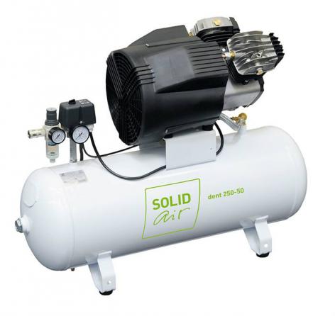 Безмасляный компрессор для стоматологии SOLIDdent BASIC 150 — 24, с прямым приводом, на ресивере 24л, производительность по нагнетанию 110 л/мин, давление 8 бар