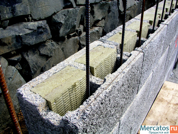 Строительные блоки Дюрисол для возведения наружных стен с повышенными тепло- и звукоизоляционными свойствами. Толщина утеплительной вставки из каменной ваты Rockwool 105мм.